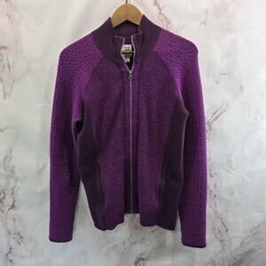 Title Nine Sweater Womens Medium Purple Merino Wool Mock Neck Full Zip