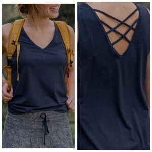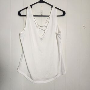 Title Nine White Yasumi Moisture Wicking Tank Medium Open Crossover Back