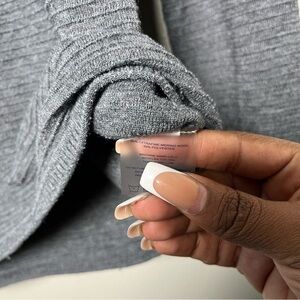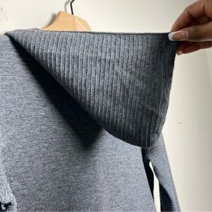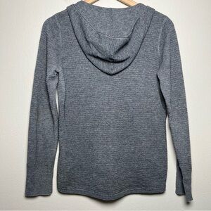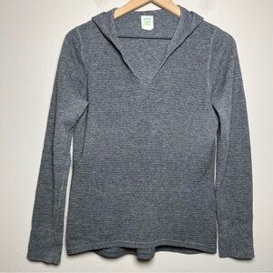 Title Nine Women Wool Sweater Large Gray Pullover V-Neck Hooded Lightweight