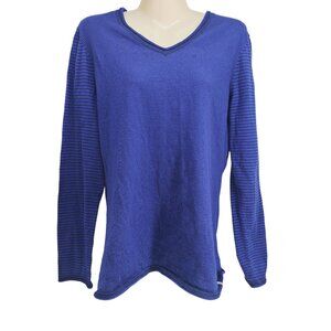 Title Nine Womens Blue Striped V-Neck Long Sleeve Sweater L Vagabond