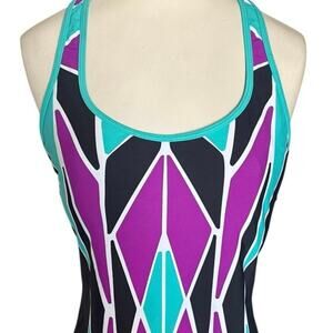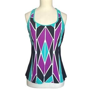 Title Nine Women's Tankini Swim Top Size M Racerback Purple Teal Gray