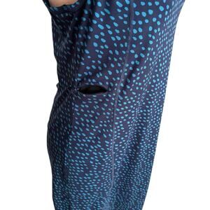 The Title Nine Women's Small Blue Batik Dot Athletic Outdoor Alpha Racerback Tank Dress is a stylish and versatile piece perfect for casual occasions. Made of a comfortable polyester and spandex blend in a knee-length jersey fabric, this sleeveless dress features a round neckline, pullover closure, and a range of seasonal themes including outdoor activities, athleisure, hiking, and sports. With a stretchy material and convenient pockets, this tank dress is perfect for staying comfortable and active during the warmer months of summer, fall, or spring.