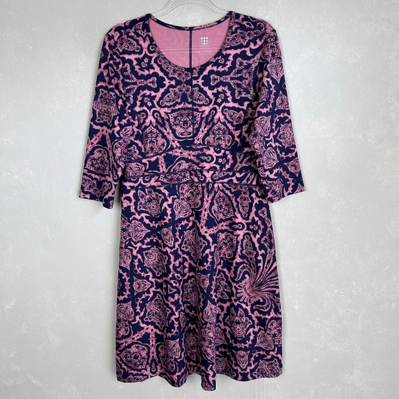 Title Nine size L half sleeve dress fit & flare stretch jersey dress pink navy