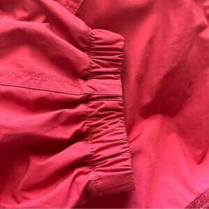 Tomato red lightweight rain jacket with purple lining in hood by Title Nine, size large