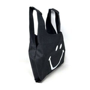 Share your smile with the world with this fun and cheerful tote bag, featuring a bold, oversized smiley face on the front! Compact yet roomy enough for everyday essentials, this lightweight and easy-to-carry tote is perfect for quick errands, casual outings, or adding a pop of happiness to your look. With durable handles and a versatile design, this bag is a feel-good accessory you’ll want to take everywhere!