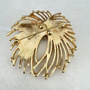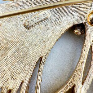 Elegant vintage Monet brooch in gold-tone with intricate knot detail. A sophisticated statement piece great for formal occasions or everyday wear.