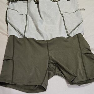 This very lightly used skort from Title Nine showcases a vibrant green hue adorned with a bold tropical leaf print, perfect for a relaxed resort vibe. Its casual style and comfortable fit make it an ideal choice for leisurely outings, work or sports. The skirt's flat waistband ensures ease of wear and a flattering silhouette. this score boasts five pockets; two front slit pockets, two pockets on the shorts and one key or airbud pocket in the back waistband. Fabulous skort that can go from work to play.