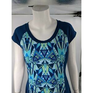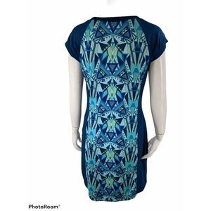 Title Nine Gidget 2.0 Dress Size Small Venetian Blue Geometric Print. Very Good Pre-owned Condition. No rips, holes, or stains. Comes from smoke free environment.