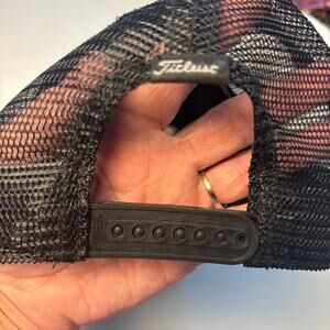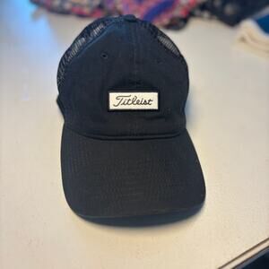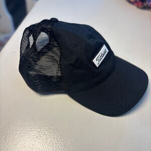 Trendy classic golf .Elevate your golf style with this Titleist trucker hat! This classic black hat features a breathable mesh back and an adjustable snapback closure for a comfortable fit. The front showcases a stylish Titleist patch.