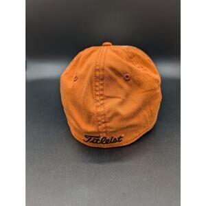 Titleist Hat or Cap. Men's Size M/L or Medium/Large. Fitted Golf Hat. Orange with Off white. 3D patches make this Retro looking. There are a few blemishes, review photos. Washed and ready to wear. See photos for details.