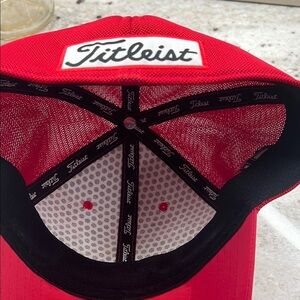 Vibrant red cap with bold Titleist embroidery. Ideal for sports and casual outings.