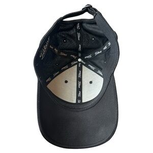 This Titleist Heritage Club 6-Panel Golf Hat Baseball Cap in Black is One Size Fits All. In good overall condition, with some wear at the adjustable buckle.