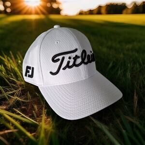 Titleist Tour Golf Hat FJ Elite Pro V1 Fitted A-Flex M/L Wht/NVY Cap. This is a white and Navy golf hat made of polyester and mesh, with a solid mesh pattern. It features lightweight and breathable fabric, making it suitable for summer, fall, and spring. The hat is designed for men and has a size of M/L. It is suitable for both activewear and casual wear, and it has a tiger woods character design. The hat is perfect for golfers who want to improve their game and look professional.