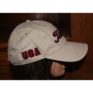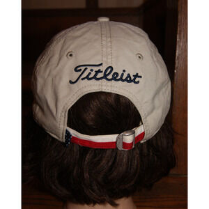 Titleist USA Red White Blue American Adjustable Tan Strapback Hat Cap Good used condition - see photos