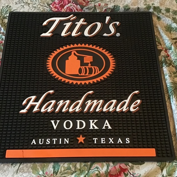 Tito's Hand Made Vodka Rubber Spill Rail Cocktail Bar Bartender Mat - 16” x 16”
