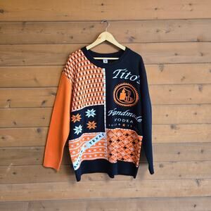 Tito's Handmade Vodka Booze Ugly Sweater Colorblock Orange Black Pullover