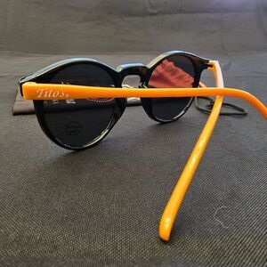 Stylish Tito's Handmade Vodka bandana, coozie and sunglasses .Features vibrant orange and black design. Perfect for the beach or poolside