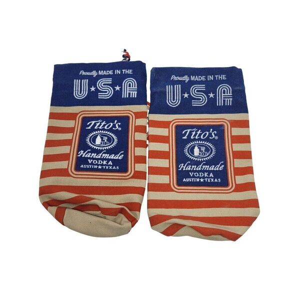 Tito's Handmade Vodka Patriotic Burlap Bag Pouch Bottle Cover Gift Cheers USA