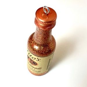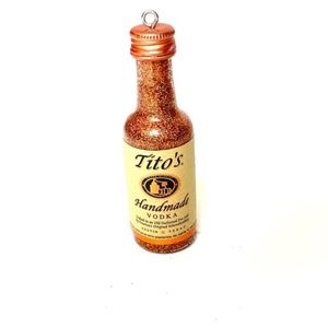 Handmade from original Tito’s Vodka shot bottle (liquor not included). Decorative plastic bottle that glimmers on any tree with colored glitter. These mini liquor bottles are fun, unique, and a conversation starter. Made to last and sealed to prevent opening. Measures: 4” tall and 1 1’2” wide