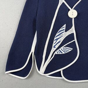 Tivoli Knit Jacket Women’s Small Blue White Asymmetrical Floral Button V Neck