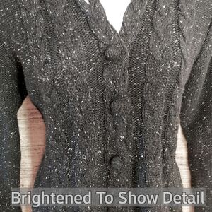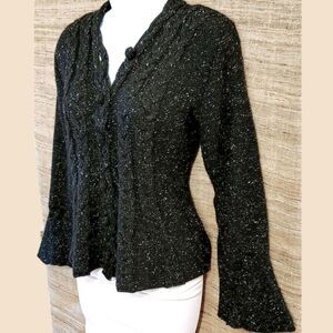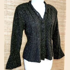 Tivoli Black Fleck Wool Silk Flare Sleeve Peplum Cardigan Sweater Womens Medium