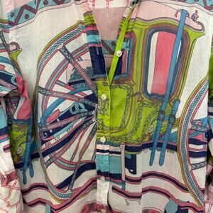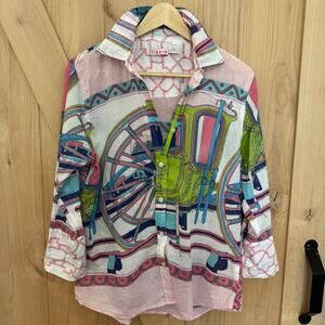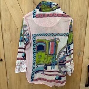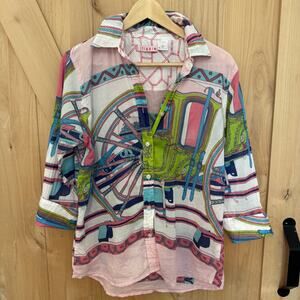 Tizzie 3/4 SLEEVE ROME Button-Up SHIRT WHEEL Pink Cotton Size Large