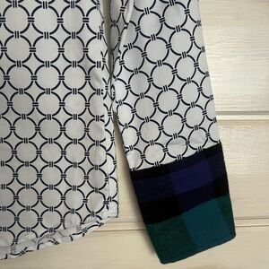 Tizzie Button Down White Shirt Black Circle Pattern Flannel Cuffs SZ Small Work