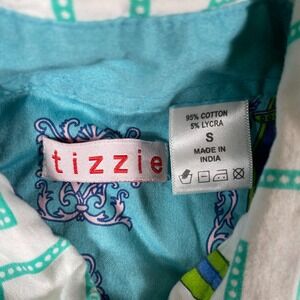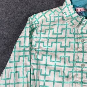 Tizzie Top Womens Small Green Button Up Shirt Cotton Blend Abstract Colorful