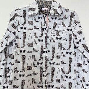 Tizzie White Shirt Fashionista Shopping Girly Themed Leopard Cheetah Print Fringe Edge Small