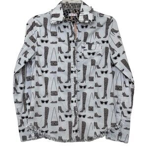 Tizzie White Shirt Fashionista Shopping Girly Leopard Cheetah Print Fringe Small