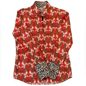 Tizzie Womens Button Down Long-sleeve Jaguar leopard graphic print size M