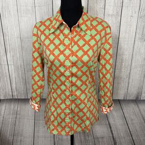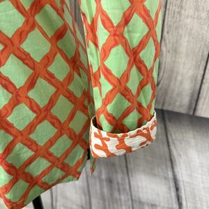 Tizzie Women's Large Green & Orange Contrast Cuff Long Sleeve Button-Front Shirt