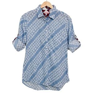 Tizzie Women’s Long Sleeve Button Up Shirt Blue and White Print Size XS
