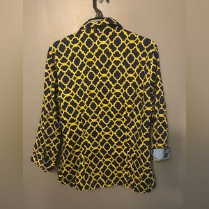 Tizzie from Dizzy Lizzie Shirt - Yellow and Blue Geometric Patterned Blouse