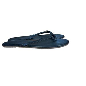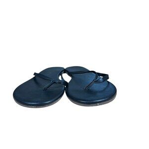 Tkees Black Riley Leather Slip-On Flip Flops Women's Size 8 Excellent Condition!