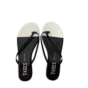 Tkees Womens Black White Leather Colorblock Flip Flop Sandals Size 8