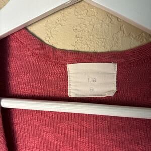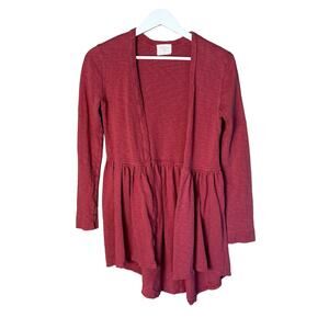 T.la Anthropologie XS Beira Pink Woven Peplum Cardigan Top Open Front