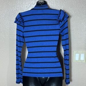 T.la Anthropologie striped ruffle turtleneck top new xs blue/black