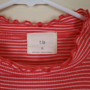 T.la Anthropologie Red & White Striped Peplum Tank