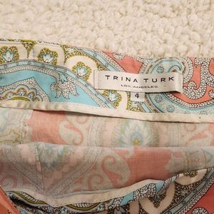 Tlrina Turk paisley floral teal and peach pencil skirt size 4