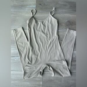 This is a scoop-neck jumpsuit with adjustable straps designed for low to medium-impact activities. It's made with our TnaBUTTER™ fabric— a barely-there, buttery soft fabric that shapes your body and moves with you.