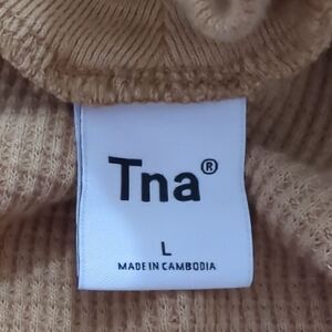 Tna Camel Mock Turtleneck Cropped Thermal Long Sleeve Blouse