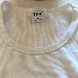 Elevate your casual wardrobe with this Tna ribbed tank top. Crafted in a versatile white, it's perfect for layering or wearing on its own. Enjoy comfort and style with this essential piece.