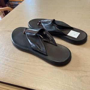 Men's Leather slide size 7 1/2 can be unisex for women's size 9 never worn price sticker still on
