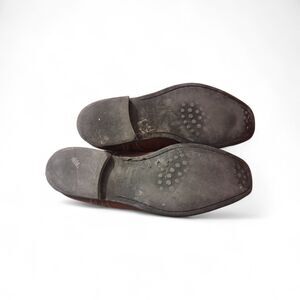 The To Boot New York Adam Derrick Men's Size 11.5 Brown Leather Cap Toe Oxford is a stylish and sophisticated dress shoe perfect for the modern man. Made in Italy with high-quality leather, this shoe features an almond toe shape and lace-up closure for a classic look. The cushioned insole and rubber outsole provide comfort and durability, making it suitable for all seasons. Whether you're heading out for a night on the town or a day in the city, these shoes are sure to make a statement with their preppy and timeless style.