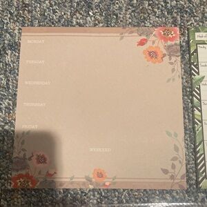 Floral and botanical designs. Includes weekly planner and lined to-do pads. Pretty pink, peach, green color palette.
