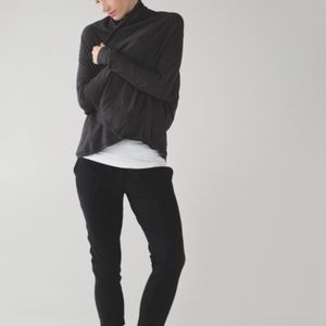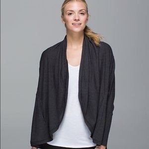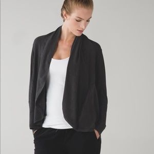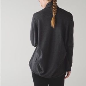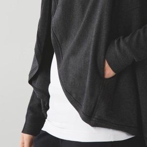 DESCRIPTION: Stretch French Terry fabric is soft against your skin and has built-in stretch that moves with you, longer hem at the back to cover you up, oversized fit for easy layering, pockets. Perfect drapey wrap to toss on post gym or studio to hit the town and continue your day.