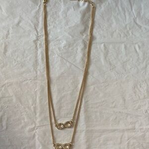 To Infinity Two Layer Necklace Gold Tone with Rhinestones