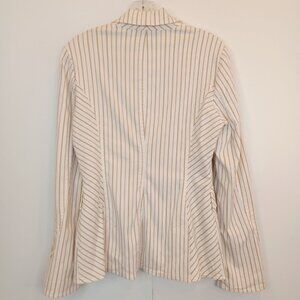 To The Max Womens Sz S Cream Pinstripe Button Front Blazer Stretch Office Career