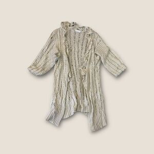 To The Max Wool Blend Open Knit Long Cardigan Sand M